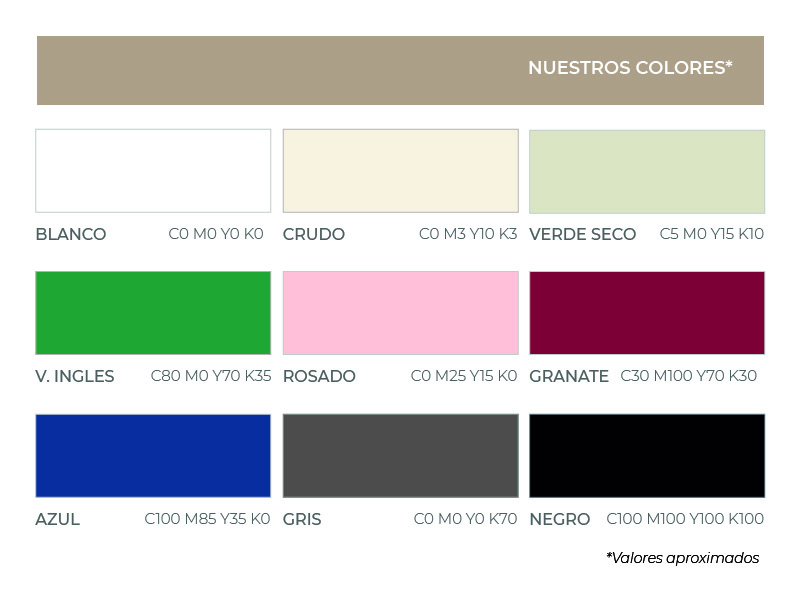 Para facilitar la elección del color adjuntamos como referencia una pantonera de colores con valores aproximados.
