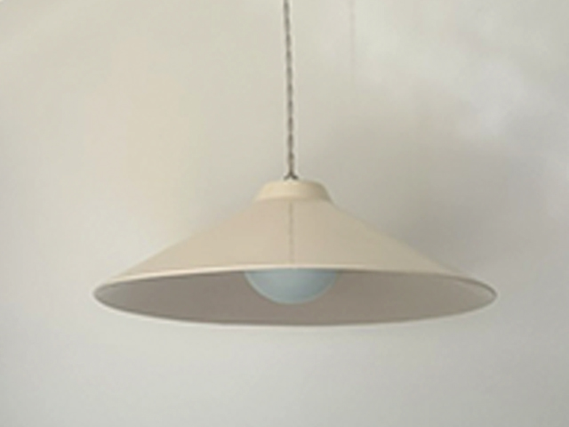 Esta lampara se entrega con 80cm de largo de cable trenzado y un florón modelo plano para la salida del cable en el techo. El florón es cerámico, tiene 12 cm de diámetro y 2 cm de profundidad.